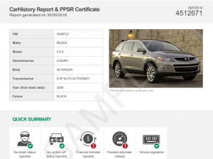 Car History does a background check and emails you the results for less than $40. You need the rego or the VIN number of the car you’re interested in and it’ll come back with something like this: